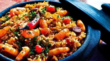 Ligue o forno a 210 graus. Deite metade do arroz num tabuleiro de louça ou barro, espalhe por cima a mistura do pato, cubra com o restante arroz e pincele com o ovo previamente batido com um pouco de água. Disponha então por cima as rodelas de cenoura e as tiras de bacon, leve ao forno durante 10 minutos, retire e sirva.